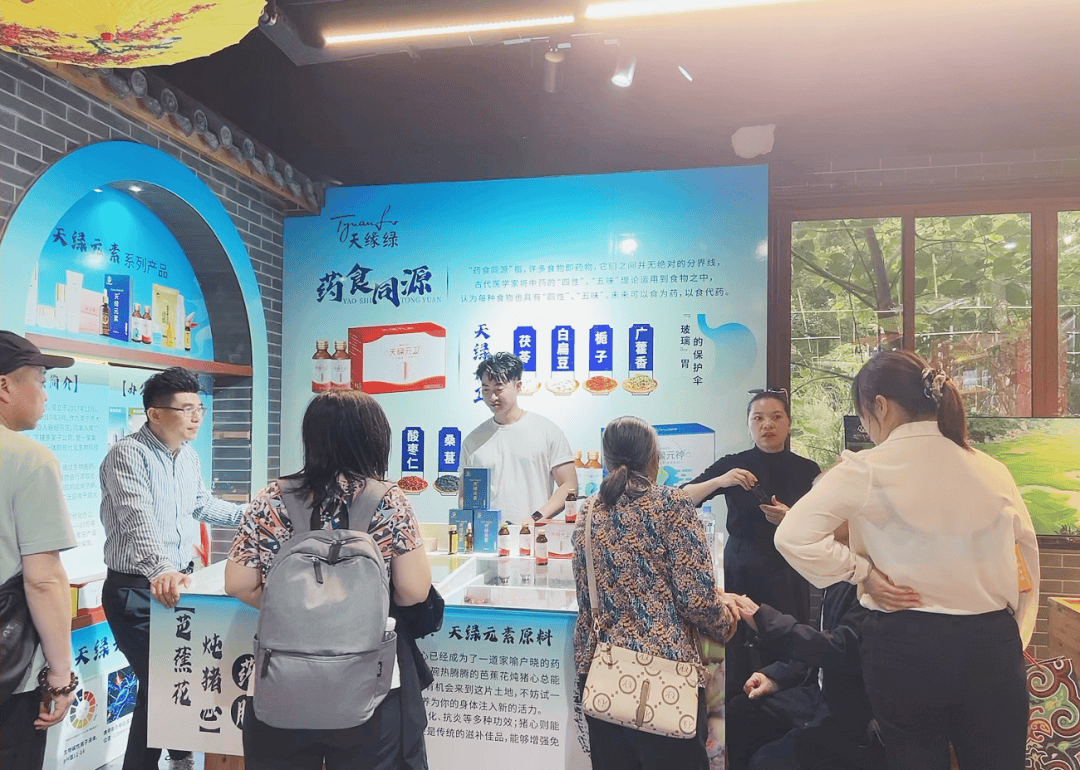 4月11日,廣西民族村內(nèi)的鄉(xiāng)村振興產(chǎn)業(yè)展示中心藥膳體驗館盛大開館,天緣綠集團的天綠元素系列產(chǎn)品在其中占據(jù)了引人注目的展位。此次入駐的產(chǎn)品中,兩款明星產(chǎn)品——天綠元衛(wèi)和天綠元神,以其獨特的中藥材和食材成分,吸引了眾多游客的目光。