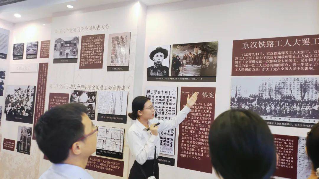 走進黨史工運史展陳廳,時光倒流,全體人員仿佛置身于那段波瀾壯闊的革命歲月。展板上,一幅幅生動的圖片和詳細的文字,清晰地勾勒出中國共產黨領導下的中國工人運動如何從最初的星星之火燎原成熊熊烈火,最終迎來輝煌勝利的壯麗畫卷。