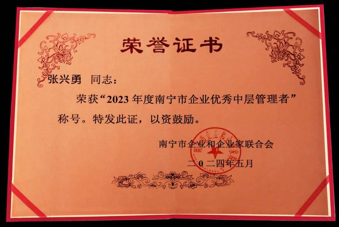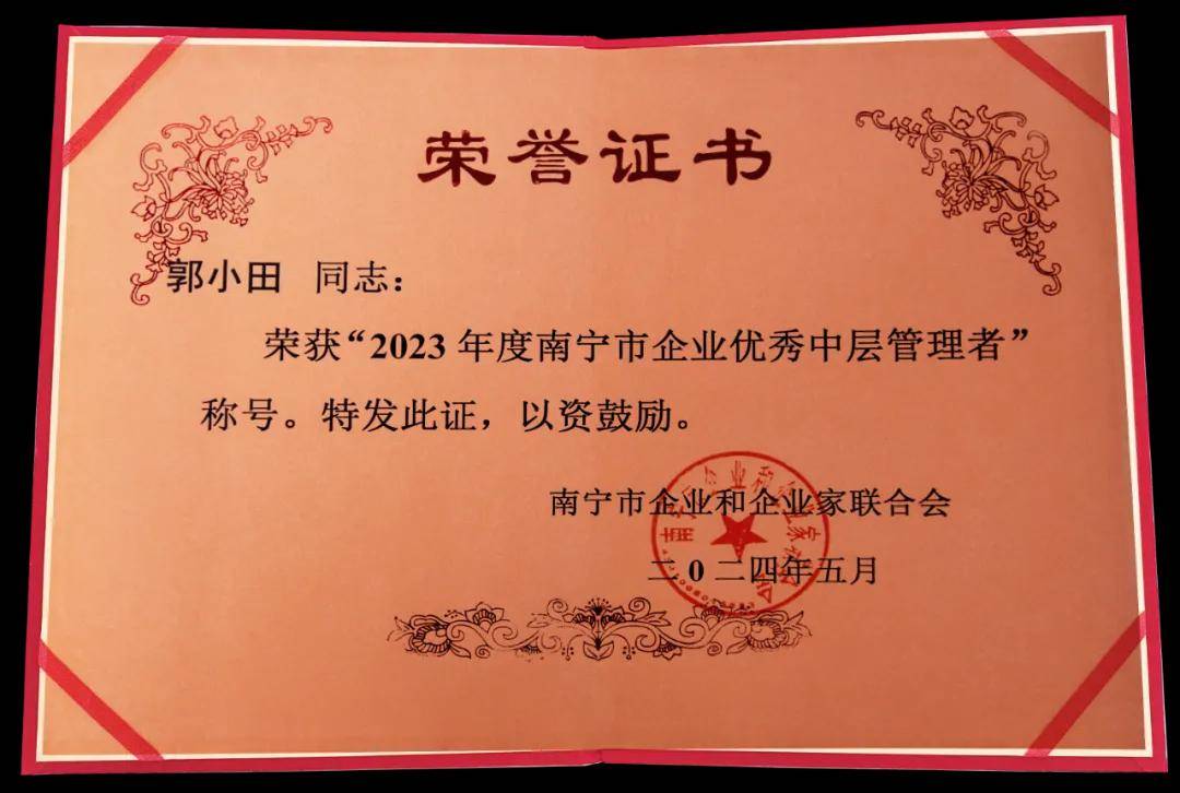喜報(bào)!天緣綠集團(tuán)多位中層管理者榮獲“2023年度南寧市企業(yè)優(yōu)秀中層管理者”