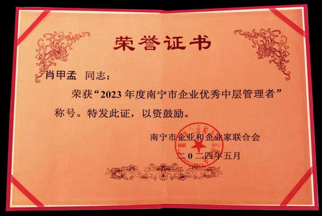 多年來,廣西天緣綠科技集團(tuán)憑借其卓越的技術(shù)實(shí)力和市場表現(xiàn),贏得了業(yè)界的廣泛認(rèn)可,陸續(xù)獲得國家高新技術(shù)企業(yè)、廣西知識產(chǎn)權(quán)優(yōu)勢企業(yè)、南寧市專精特新企業(yè)、經(jīng)開區(qū)納稅A級大戶等榮譽(yù)。同時(shí),集團(tuán)一直高度重視中層管理者的培養(yǎng)和發(fā)展,通過建立完善的培訓(xùn)機(jī)制和激勵(lì)機(jī)制,為中層管理者提供了廣闊的成長空間和職業(yè)發(fā)展平臺(tái)。此次榮獲“2023年度南寧市企業(yè)優(yōu)秀中層管理者”榮譽(yù)稱號,不僅是對中層管理者個(gè)人能力的認(rèn)可,更是對集團(tuán)整體管理水平的高度肯定。