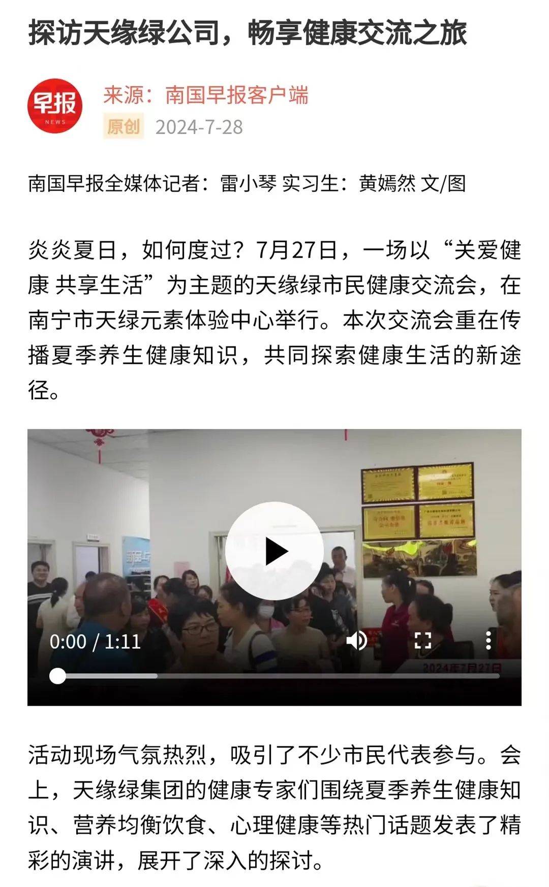 引爆媒體熱潮!天緣綠健康交流會獲南國早報(bào)等三十多個(gè)媒體報(bào)道